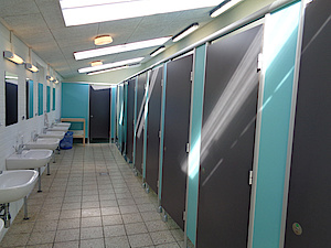 Der er bygget en nyere toiletbygning. Her er der håndvaske, bruserum, samt handicap bad. og et særskilt handicap toilet med bad.